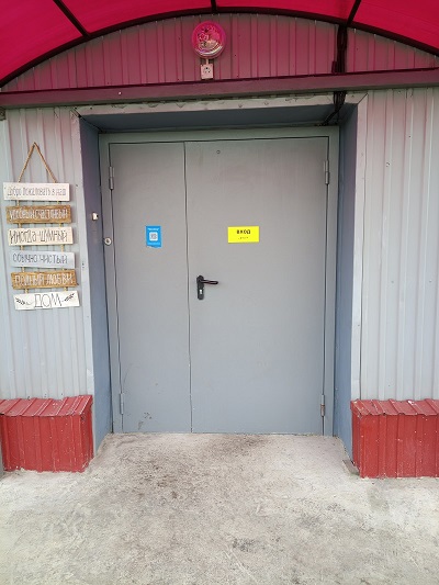 Вход: кнопка вызова персонала, калитка и ворота с автоматическим распашным механизмом